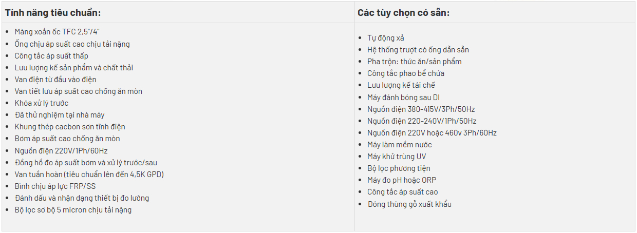 • Nâng cấp thiết bị cho TDS lên đến 5.000 ppm